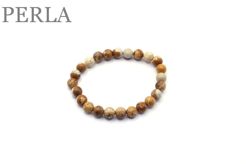 Náramok z pravidelných guličiek veľkosti 8 mm, navlečený na gumičke.